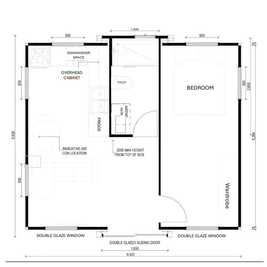 With external dimensions of approximately 5.94m long, 6.42m wide and 3.07m high once opened, and an internal ceiling height of 2.4m, the 20ft Expandable creates a practical full-height living environment that feels open and usable, not cramped.