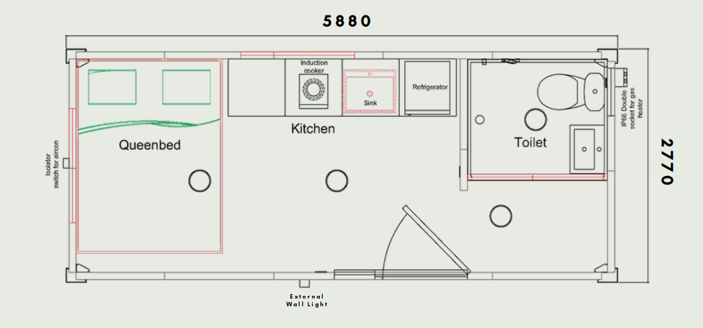 | External dimensions | 5800mm (L) × 2770mm (W) × 2770mm (H) |